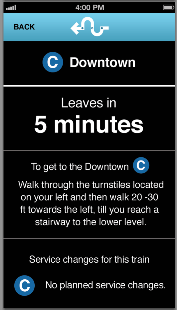 I was there on Sunday. Great job. Think about adding train arrival time for the visually impaired. Here is the link to the NYCT native Subway Time app (http://apps.mta.info/traintime/). Would be great if a similiar app had an text-to-speech component.
